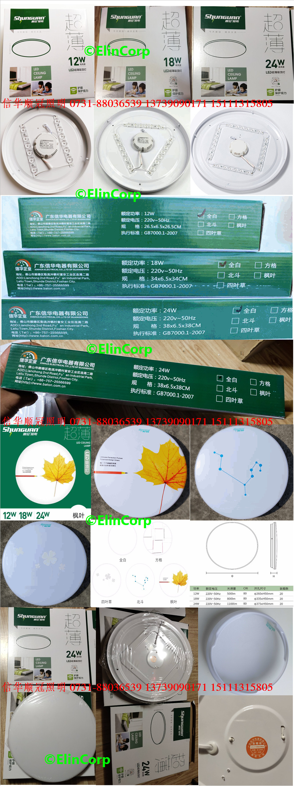 顺冠超薄吸顶灯款式五款:全白 枫叶 四叶草 北斗 方格