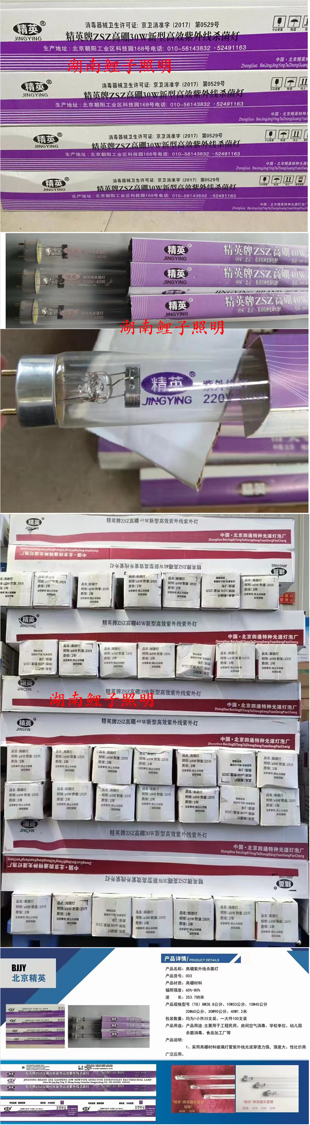 长沙天心区鲤子照明公司供应北京精英生产的北京精英高硼杀菌灯40W 30W 20W